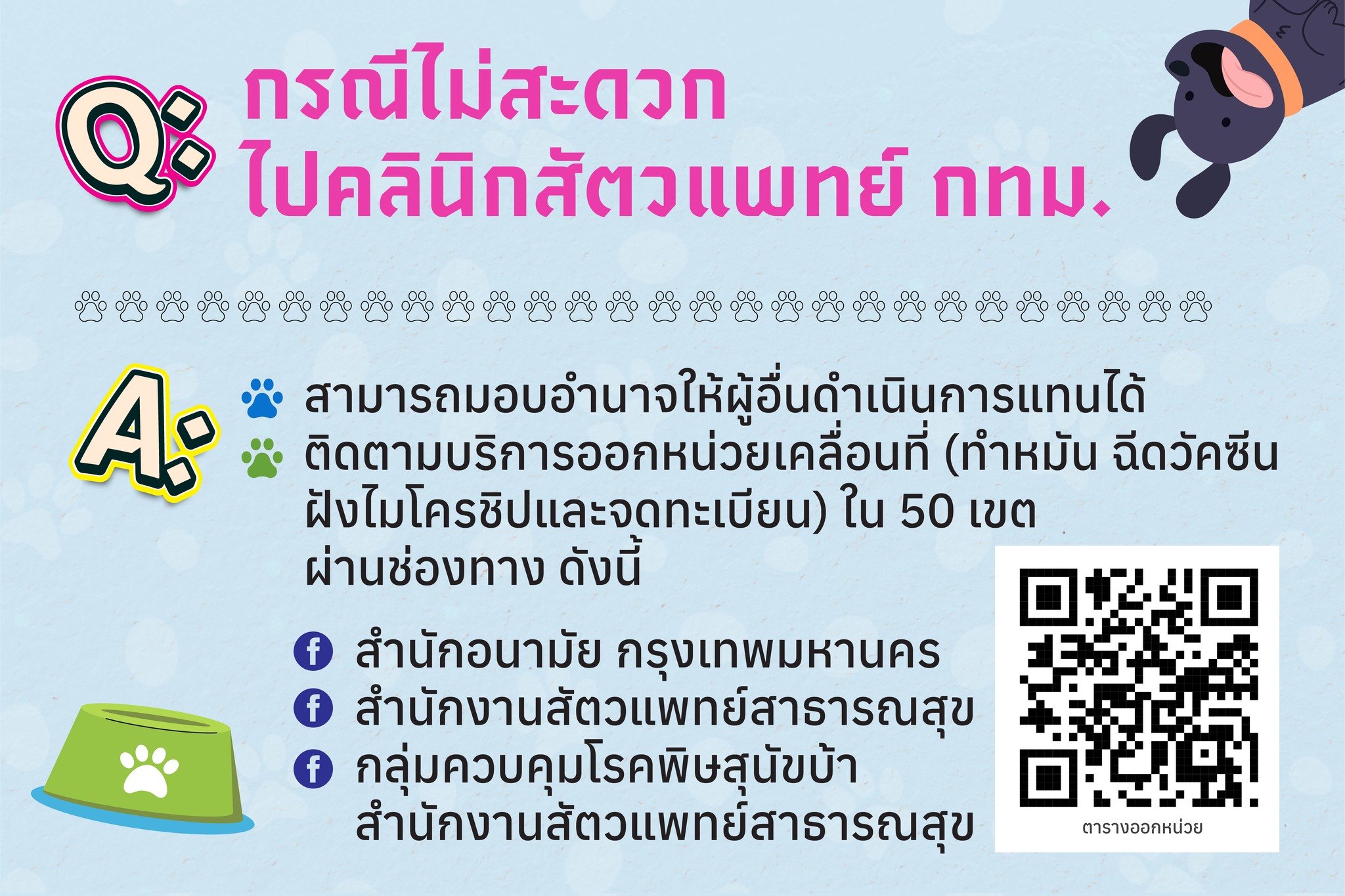 (ติดตามได้ที่ Facebook: สำนักอนามัย กทม., สำนักงานสัตวแพทย์สาธารณสุข, กลุ่มควบคุมโรคพิษสุนัขบ้า)