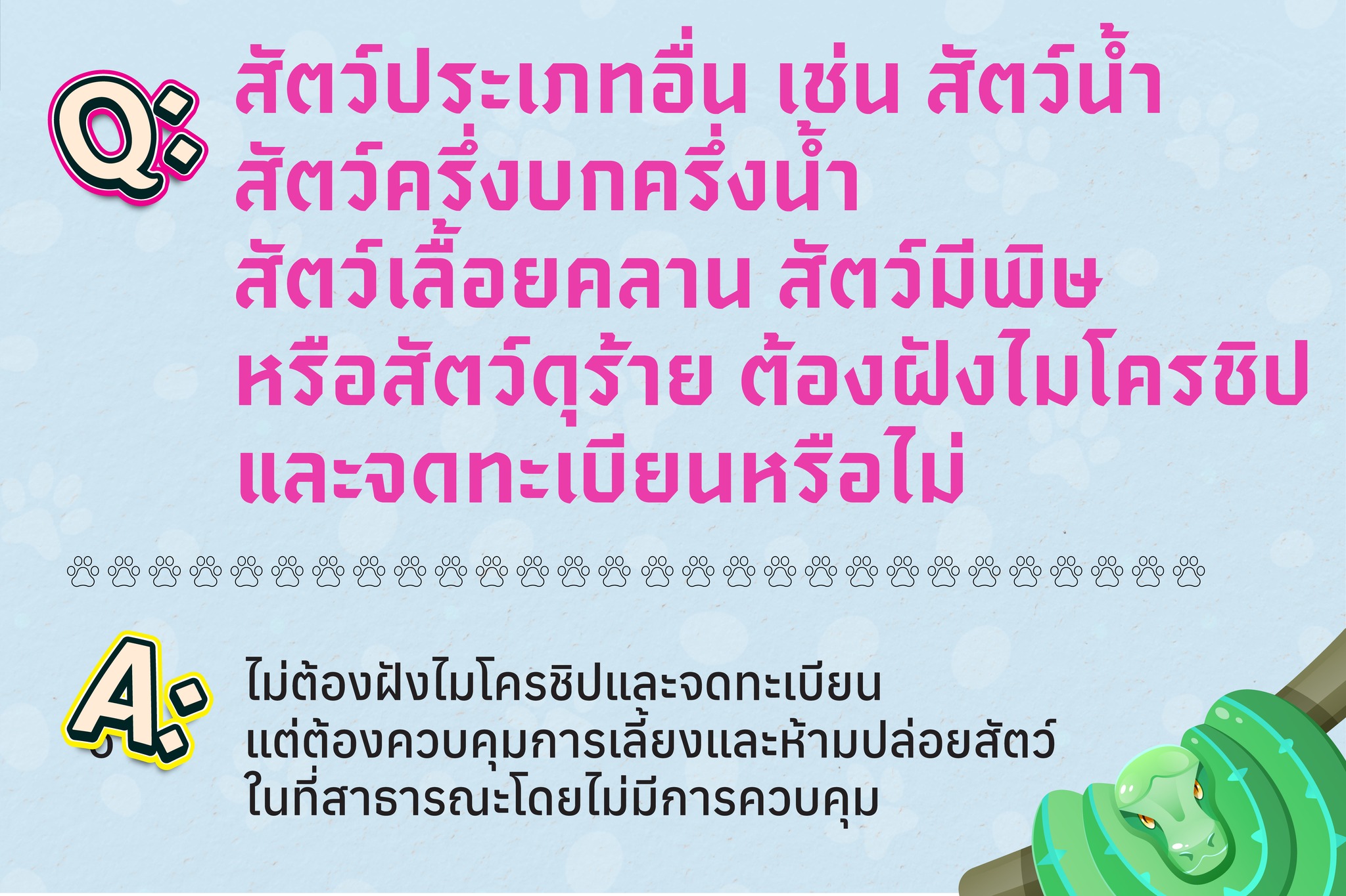 8. สัตว์น้ำ, สัตว์ครึ่งบกครึ่งน้ำ, สัตว์เลื้อยคลาน, สัตว์มีพิษ, สัตว์ดุร้าย ต้องฝังไมโครชิปไหม?